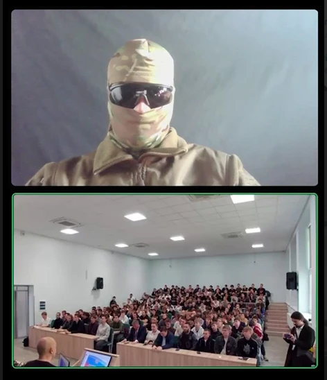 Судя по ролику, в ходе вербовочного мероприятия организаторы подключили по видеосвязи человека в камуфляже, балаклаве и темных очках, которого считали российским военным. Однако мужчина заявил, что он украинский военный.